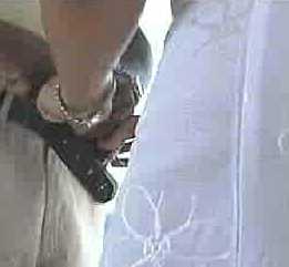 Still handling the man's thick cock and nuts, Heather watched as the once stiff piece of meat began to wilt, soon to be bent nearly in half and drooping over her fist. It was then that she snapped out of it and cringed in horror at what she had just done. "Oh, Godddd!" she gasped in total revulsion, literally dropping what she was doing right then and there. Looking down at her hands, one that had been squeezing the man's testicles and the other now covered with sticky male goo, Heather quickly drew her hands down to wipe them clean upon her skirt.