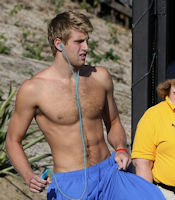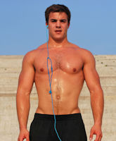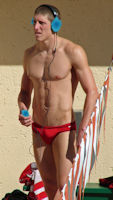 After a few minutes, his breathing and heart slowed. He rubbed his hand over his chest, getting as much of his cum as he could. Licking his fingers clean, he thought how good it tasted. He took off the headphones and tucked himself back into his speedos, then jumped in the pool and swam a few laps.