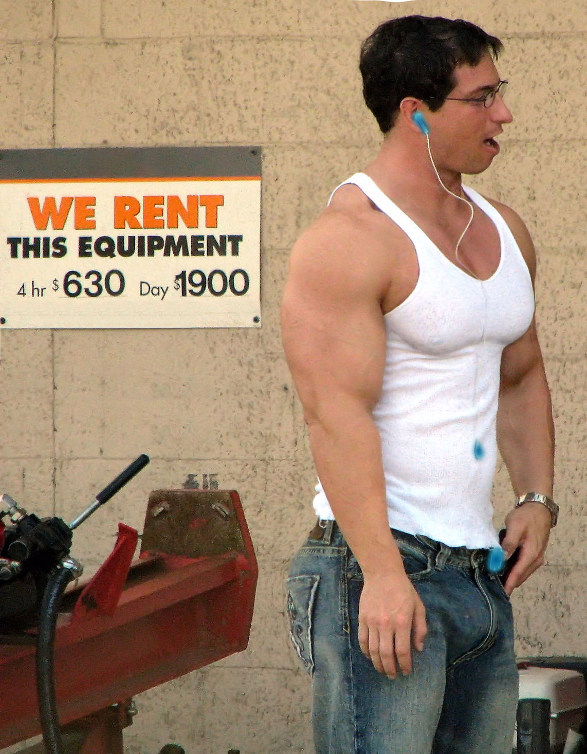 "You saw our ad online? Terrific. Yes, Bruce is our most popular handyman. He's excellent at handling the equipment. You have equipment of your own? Bruce is only authorized to use our company equipment. But he can show you how to handle your equipment for a small extra fee. A tanktop and short-shorts? Certainly. Attire is at the customer's discretion and no extra charge. Payment in full 48 hours in advance. A 50% refund if you're not fully satisfied. But we haven't had to give a refund yet. Thank you, sir, he'll be there next Friday night, and be with you for the full day. Yes, I'm sure he'll be more than able to clean all your pipes. Have a nice day."