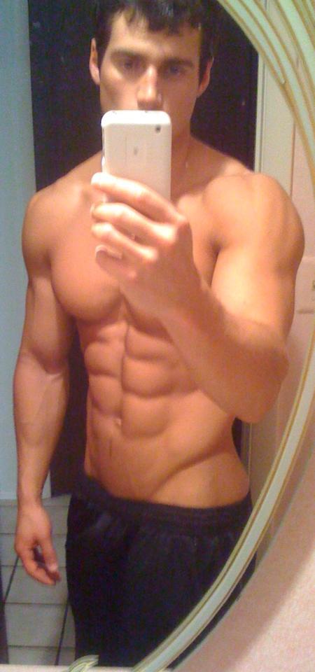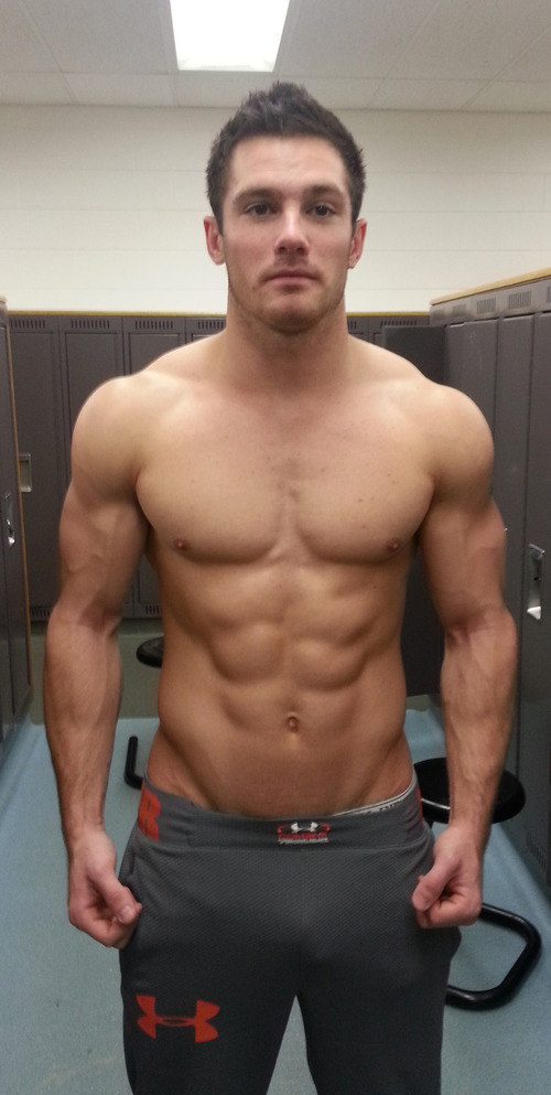 The bodybuilder did, and then did a doubletake. He had no shirt on, and his pants were pulled down to just above his pubes.