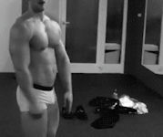 Immediately pulling the black short pants off, he now stood in boxer briefs. His excitement at standing before his master was now impossible to hide. Lifting up his arms, he flexed again.