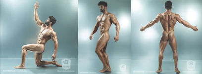 Showing off his impressive body for his master’s pleasure.