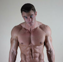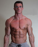 "That was a nice start," said the Master. Working his way around Sam’s pecs, he continued, "Your nipples make me almost explode with delight." Sucking and nibbling those large nipples, the Master licked his way down the valley between his abs. "Would you like me to suck your cock?"