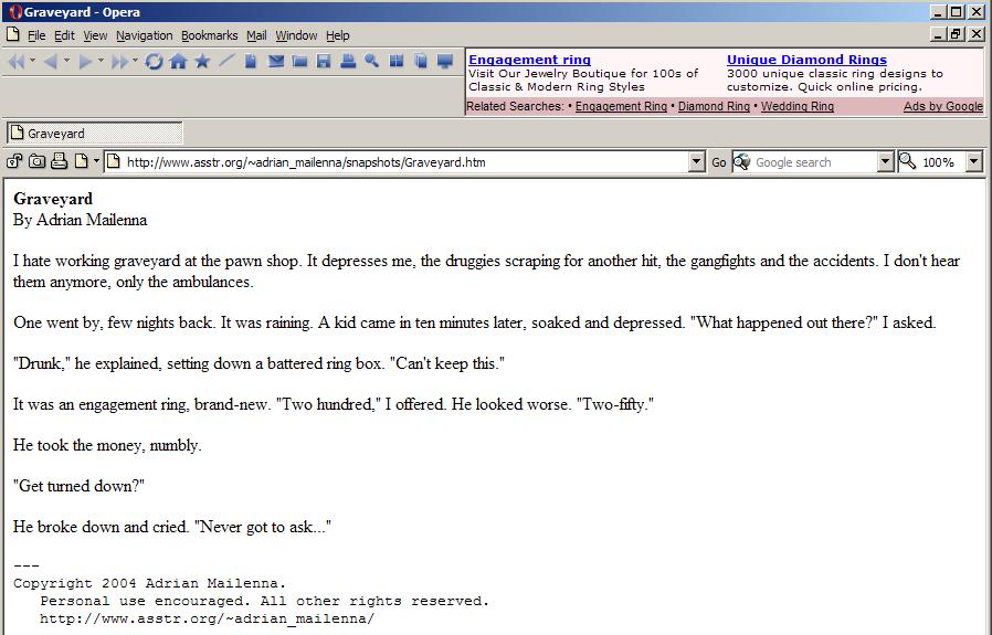| Secondary Comments: I'm an Opera user, and I noticed that GoogleAds has probably the the worst possible ads linked with this story. | ||||||