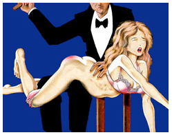 "Delia's fanny was full and lush and delectably soft, highlighted by the snowy expanse of her bikini triangle. The recent indentations of her panty lines were clearly marked on her tightly clenched bottom-tops. Garry patted her cheeks approvingly, marveling - as always - at their perfect, satiny texture. His impudent young bride had the most gloriously contoured bottie he'd ever known - and this was saying something, considering how many he'd seen over the years."
