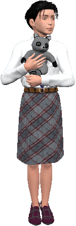down at a very worn-out stuffed toy raccoon that was sitting by her