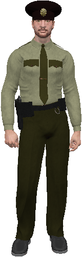 him holding a clipboard in front of his crotch and that he was hunched