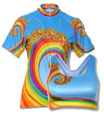 Frank's offering was clothing of some sort, further investigation revealed two garments, a proper jersey and a sort of I guess you'd call it a bra top, both in a sort of swirly rainbow design. The design was actually quite kewl and even if I'm not gonna wear the bra top the jersey is at least fairly much unisex.