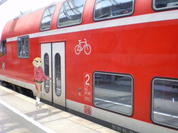 The Rhine Express was already waiting when we arrived in Remagen so we hotfooted - as much as we could, across to Gleis Zwei and joined the already packed train. We had to walk half the length of the train before we found seats, ironically in the bike carriage where we started.