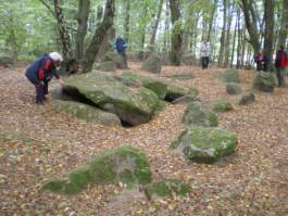 Jonathon seemed to have some experience in herding this bunch of people and we departed the Oldendorfer Totenstedt within a couple of minutes of our schedule. The next stop was barely ten minutes away, at least ten minutes after we returned to tarmac! Raven was to prove more typical of our visits for the day; park Tiddler up and then a few minutes walk to the point of interest – in this instance a single chambered tomb hidden amongst the trees.
