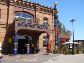 “Well as you look about inside and outside of this station you will see his work, there are lots of curves and baubles which typify his architecture. The people of Uelzen wanted something to make their town stand out and so when the railway company renovated the station they asked for Hundertwasser to do the design. Today fans of the artist and just curios people come to the town to see this place. So, you can explore a little, take some photographs maybe but please return to the bus by fifteen minutes as we have a further visit to make before we finish for the day.”